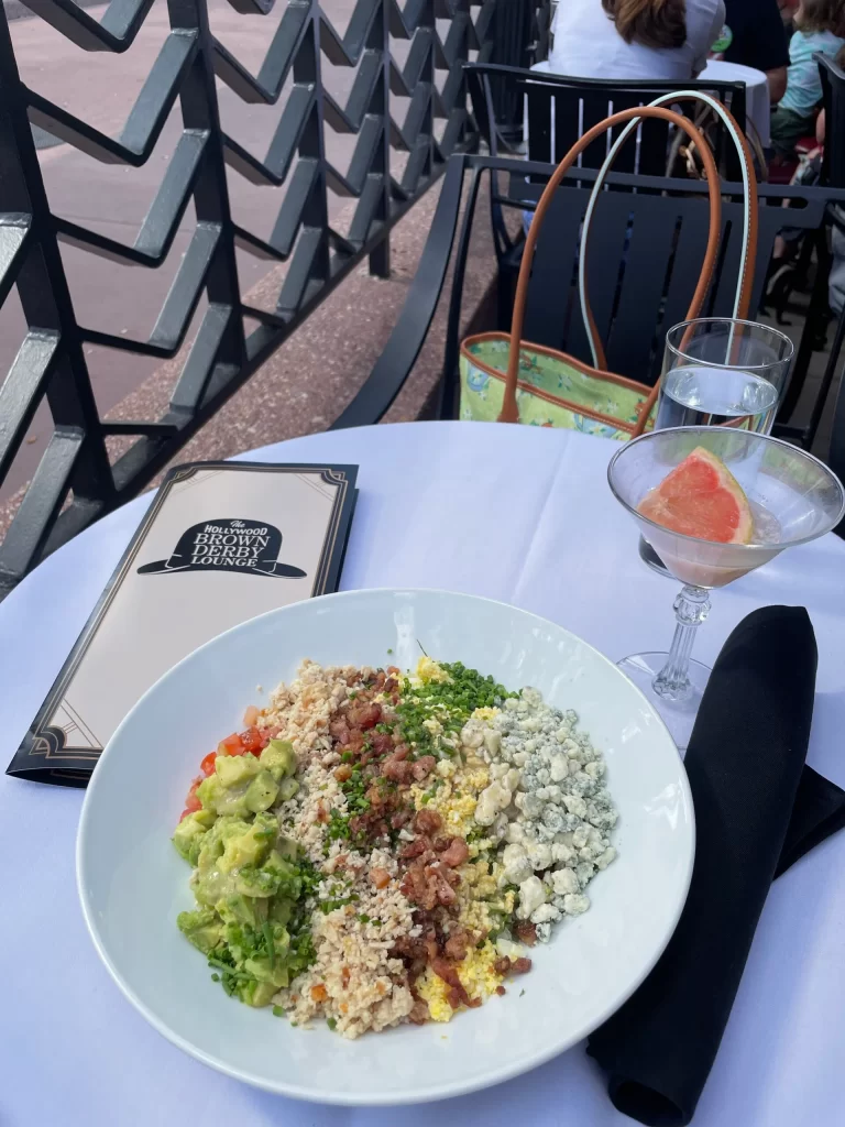 Of course you can always find a salad at Disney restaurants but some are far superior to others! The one pictured above is the famous Cobb Salad from the Hollywood Brown Derby and it is phenomenal! This salad features split roasted turkey, bacon, egg, tomatoes, blue cheese, avocado and classic dressing. It comes looking instagram ready, all chopped up and looking good! The flavors in this salad are incredible, I typically ask for it light on the blue cheese or without the blue cheese since I don’t eat a lot of dairy and it’s never and issue, you can make any modifications you need.