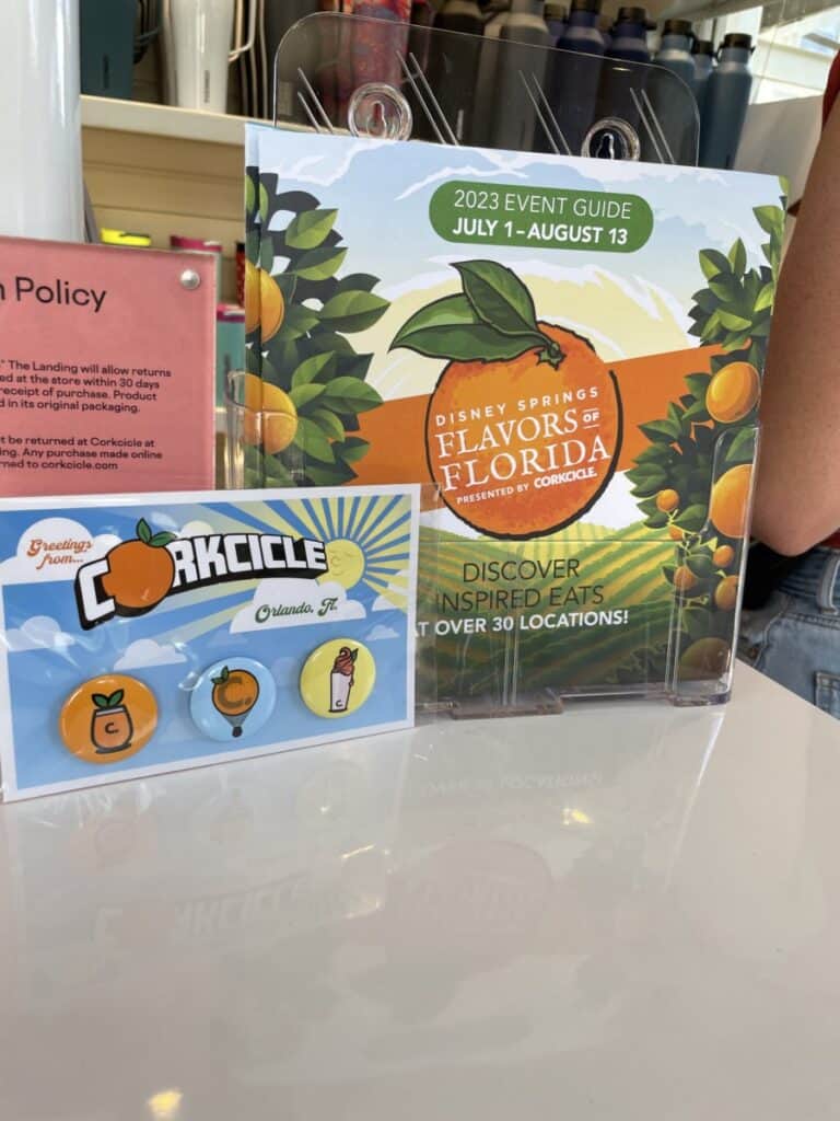 The first thing you should do is grab a guide book from one of the participating locations. I got mine from Corkcicle of course but you can find them all over Disney Springs. The guide tells you all the places that are participating in Flavors of Florida and what their offerings are for the event. There is even a map to show you where to find everything.
