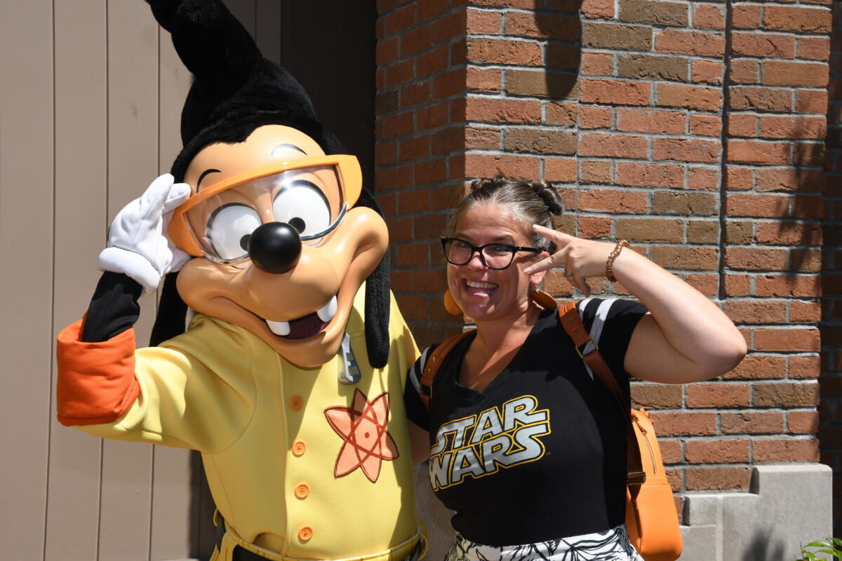 - Outside the entrance to Galaxy’s Edge, across from Muppets Courtyard: Powerline Max & Goofy